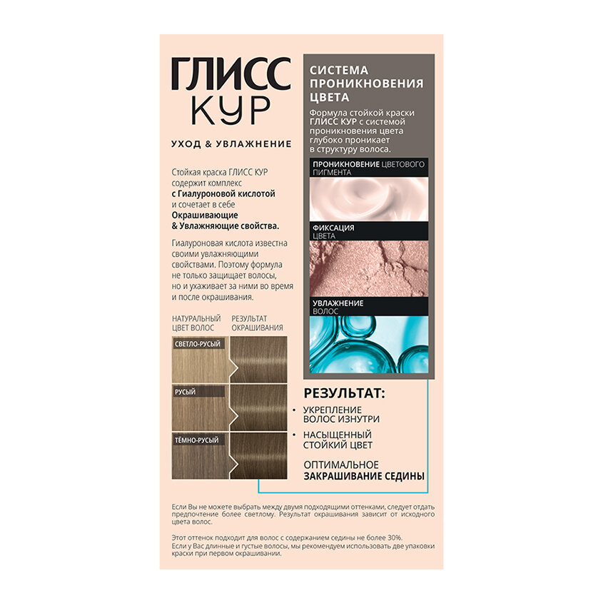 Глисс Кур Уход & Увлажнение Стойкая краска для волос, 8-16 натуральный пепельно-русый