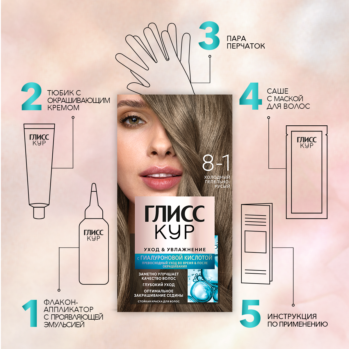СохранитьГлисс Кур Уход & Увлажнение Стойкая краска для волос, 8-1 холодный пепельно-русый, 143 мл интересное: