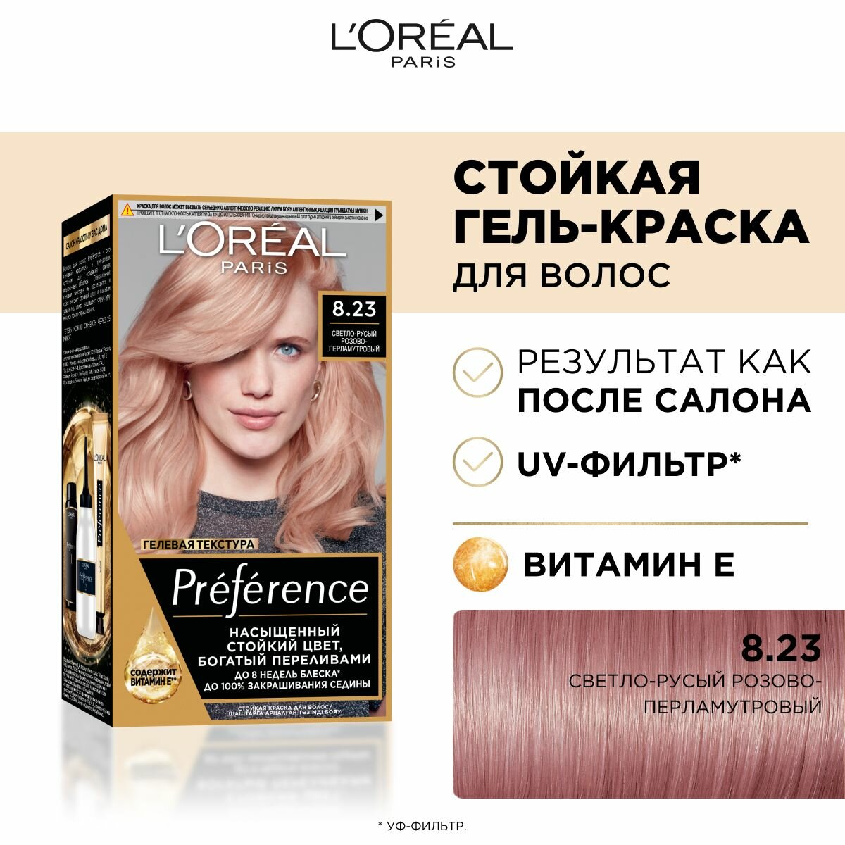 Ниже Вы можете прочитать отзывы на L'Oreal Paris Стойкая краска для волос Preference, оттенок 8.23 Светло-русый розово-перламутровый, ознакомится с подробными характеристиками, посмотреть интересные обзоры и фотографии на L'Oreal Paris Стойкая краска для волос Preference, оттенок 8.23 Светло-русый розово-перламутровый.