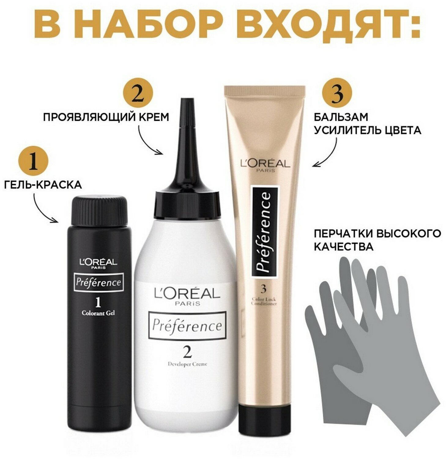 | Комплектация | флакон гель-краски (60 мл), флакон-аппликатор с проявляющим кремом (60 мл), бальзам усилитель цвета (54 мл), инструкция, пара перчаток |