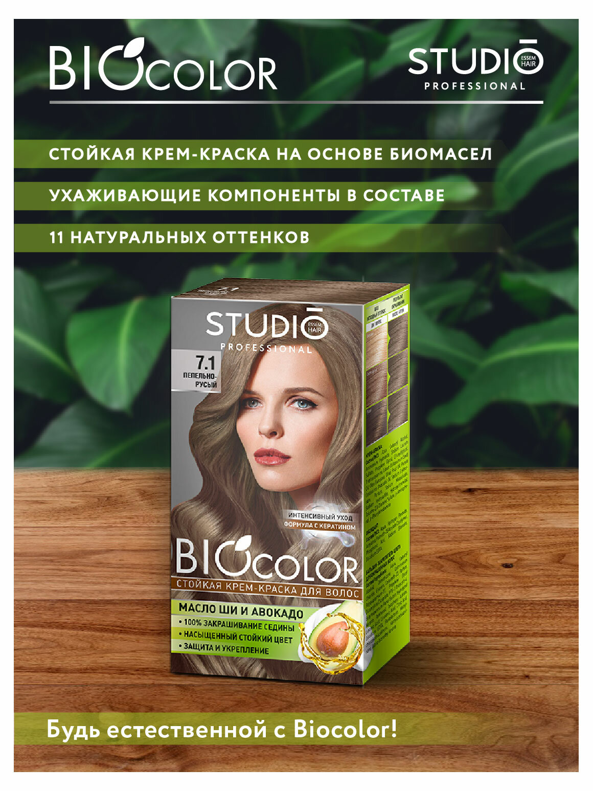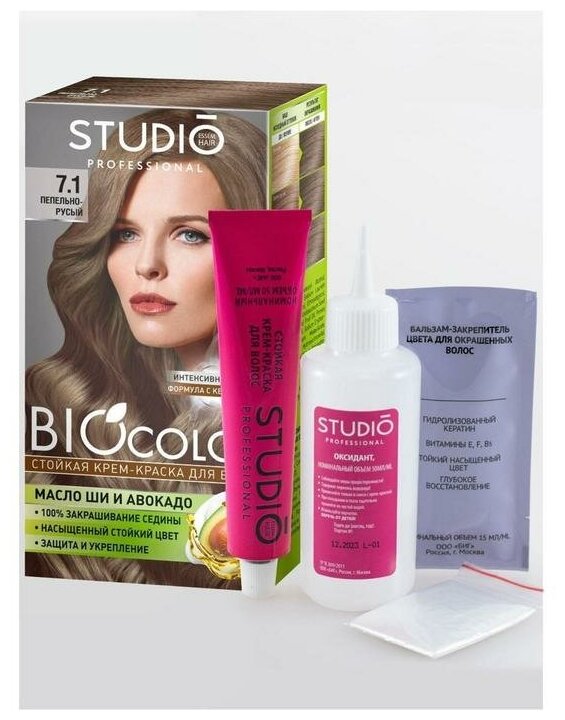 Крем-краска для волос STUDIO Biocolor, тон 7.1 Пепельно-русый, 115 мл