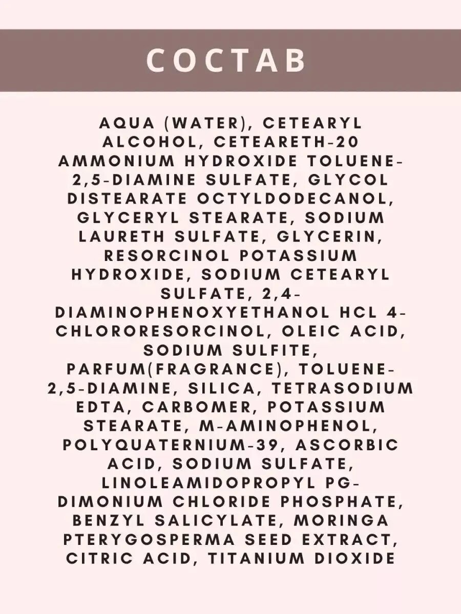 | Состав | aqua (water), cetearyl alcohol, ceteareth-20, ammonium hydroxide, toluene-2,5-diamine sulfate, glycol distearate octyldodecanol, glyceryl stearate, sodium laureth sulfate, glycerin, resorcinol potassium hydroxide, sodium cetearyl sulfate, 2,4-diaminophenoxyethanol hcl 4-chlororesorcinol, oleic acid, sodium sulfite, parfum(fragrance), toluene-2,5-diamine, silica, tetrasodium edta, carbomer, potassium stearate, m-aminophenol, polyquaternium-39, ascorbic acid, sodium sulfate, linoleamidopropyl pg-dimonium chloride phosphate, benzyl salicylate, moringa pterygosperma seed extract, citric acid, titanium dioxide |