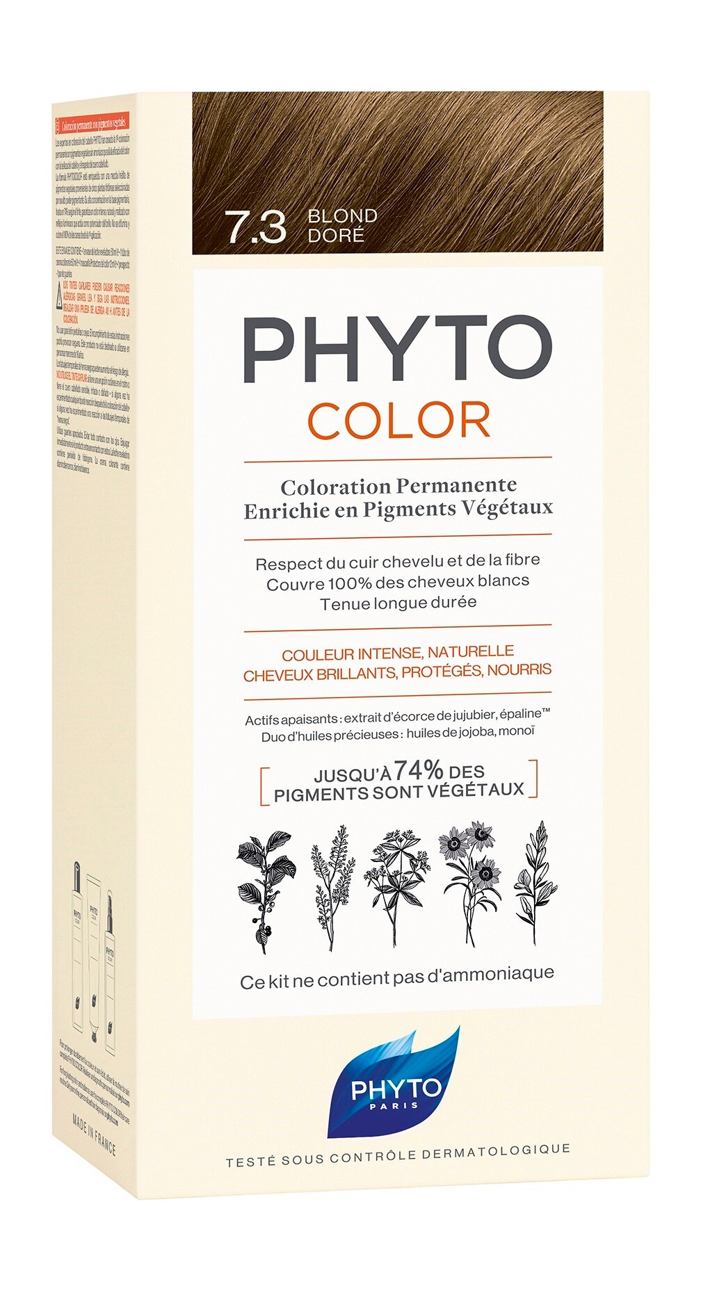 PHYTO Крем-краска для волос тон 7.3 (золотистый блонд), 50/50/12