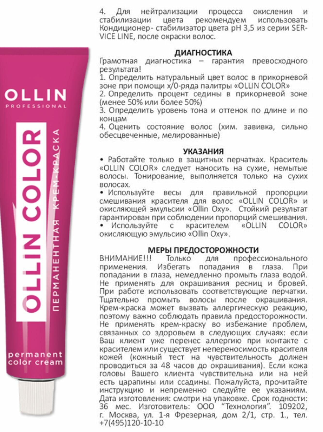 | Способ применения | смешать в неметаллической емкости крем-краску OLLIN COLOR с окисляющей эмульсией OLLIN OXY: для тонов основной палитры с 1/хх по 10/хх ряд — в пропорции 1:1,5 для окрашивания тон в тон, темнее, на тон светлее, осветление на 2-3 тона с одновременной нюансировкой цвета; для специальных блондов 11/х — в пропорции 1:2 для осветления на четыре тона с одновременной нюансировкой цвета |