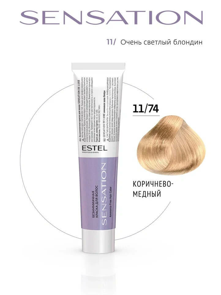 Купить Безаммиачная краска для волос SENSATION DE LUXE 11/74 очень светлый блондин коричнево-медный, 60 мл.