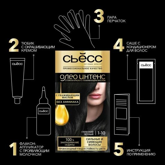 СохранитьКраска для волос Syoss сьесс / Oleo Intense, тон 1-10 глубокий черный интересное: