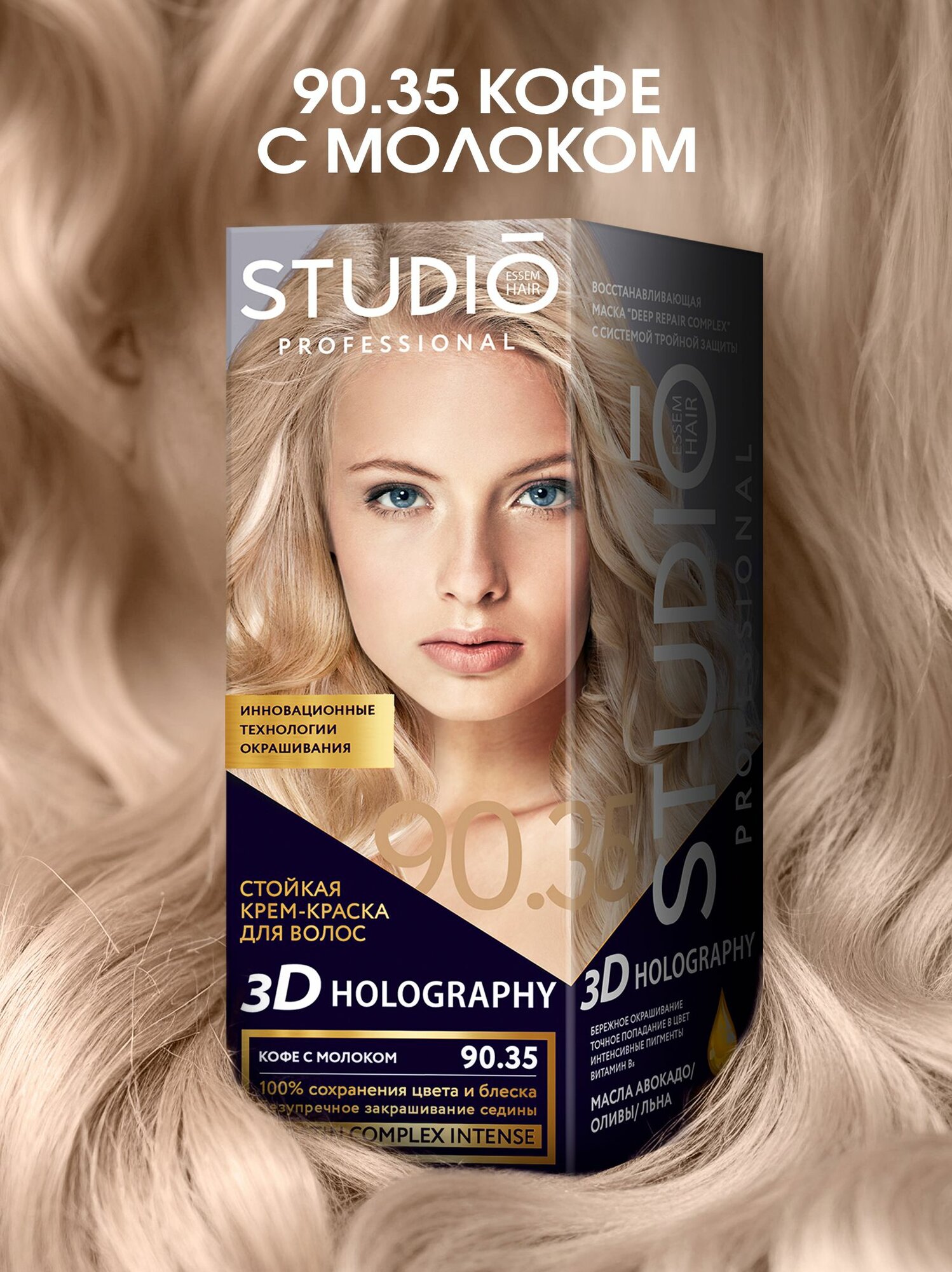Studio стойкая крем-краска для волос 3Д Голографик 90.35 Кофе с молоком, 50/50/15 мл