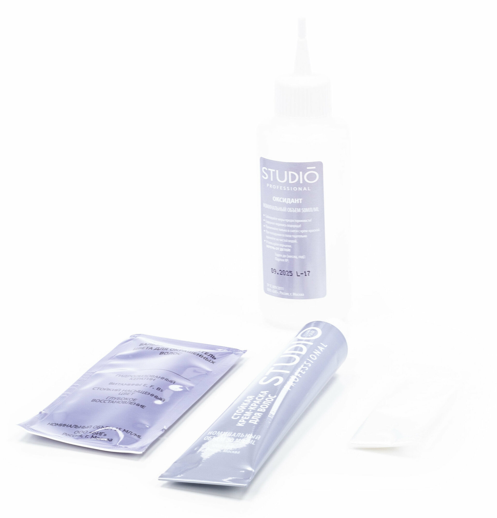 | Комплектация | Туба с крем-краской - 50 мл, флакон-аппликатор с оксидантом - 50 мл, бальзам-закрепитель - 15 мл |