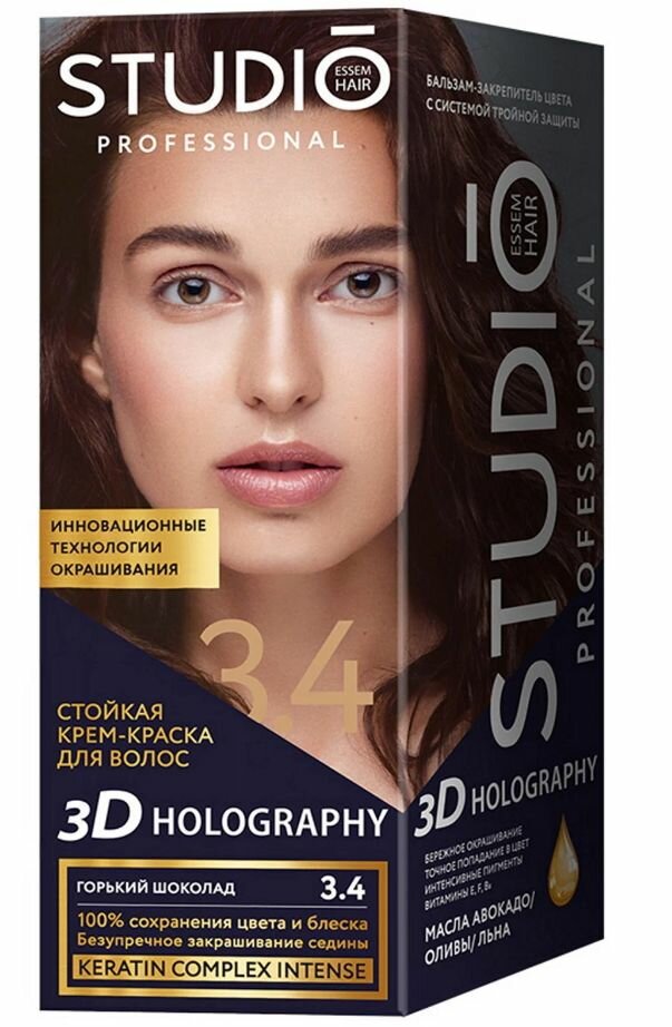 Комплект 3D HOLOGRAPHY для окрашивания волос STUDIO PROFESSIONAL 3.4 горький шоколад 2*50+15 мл
