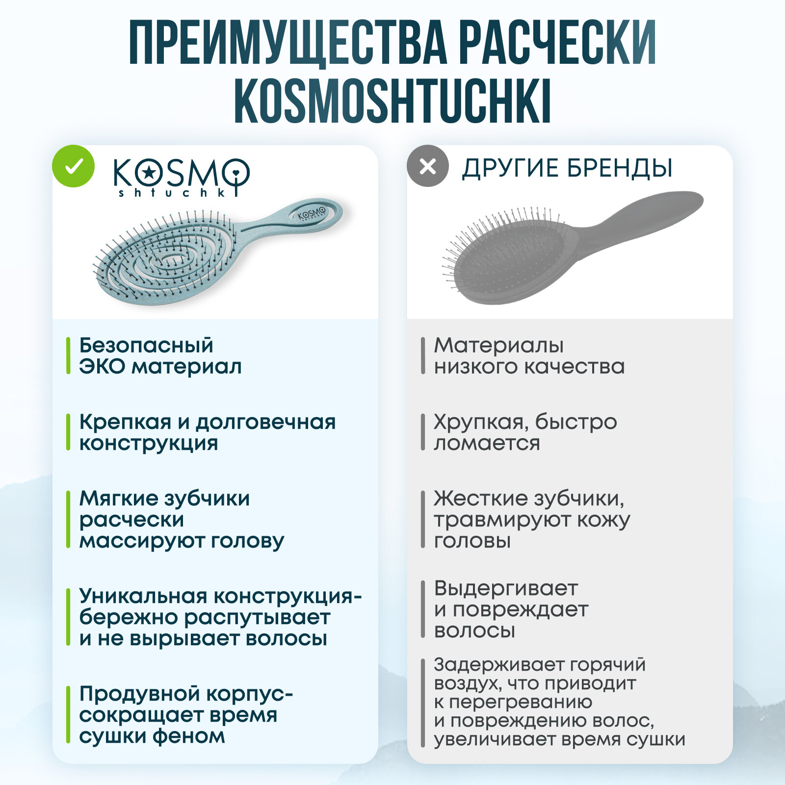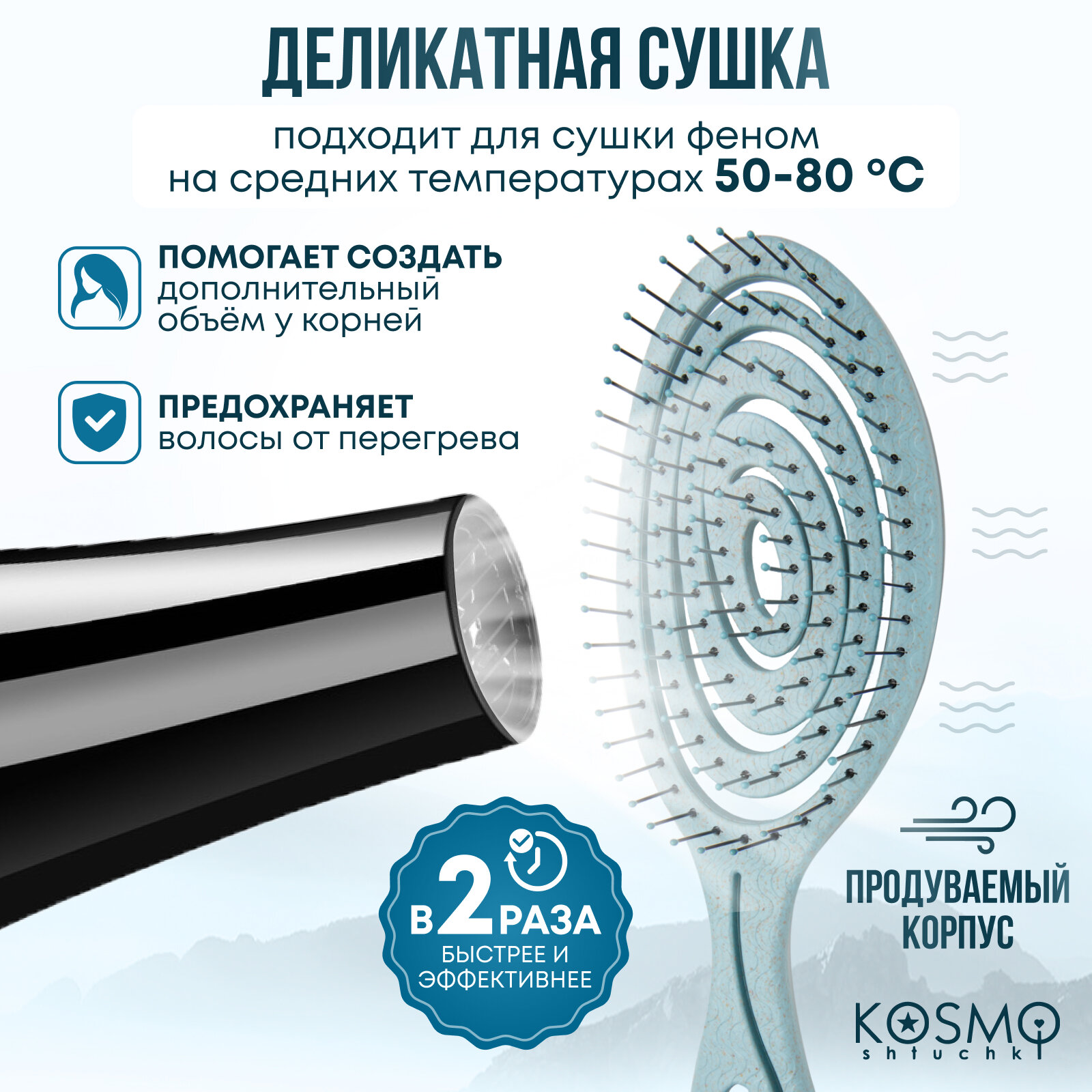 | Особенности | биоразлагаемая / для влажных волос / для вьющихся волос / для распутывания волос / продувная |