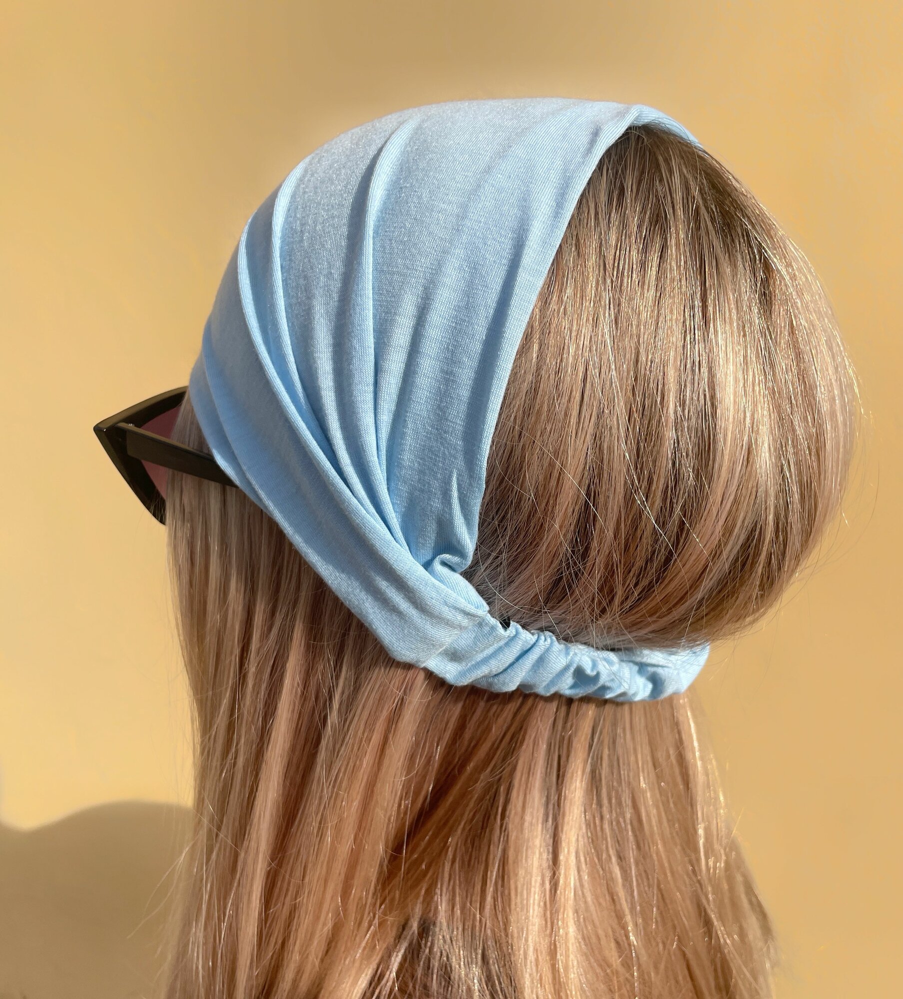 Купить Повязка бандана косынка на голову хлопковая однотонная эластичная голубая на резинке