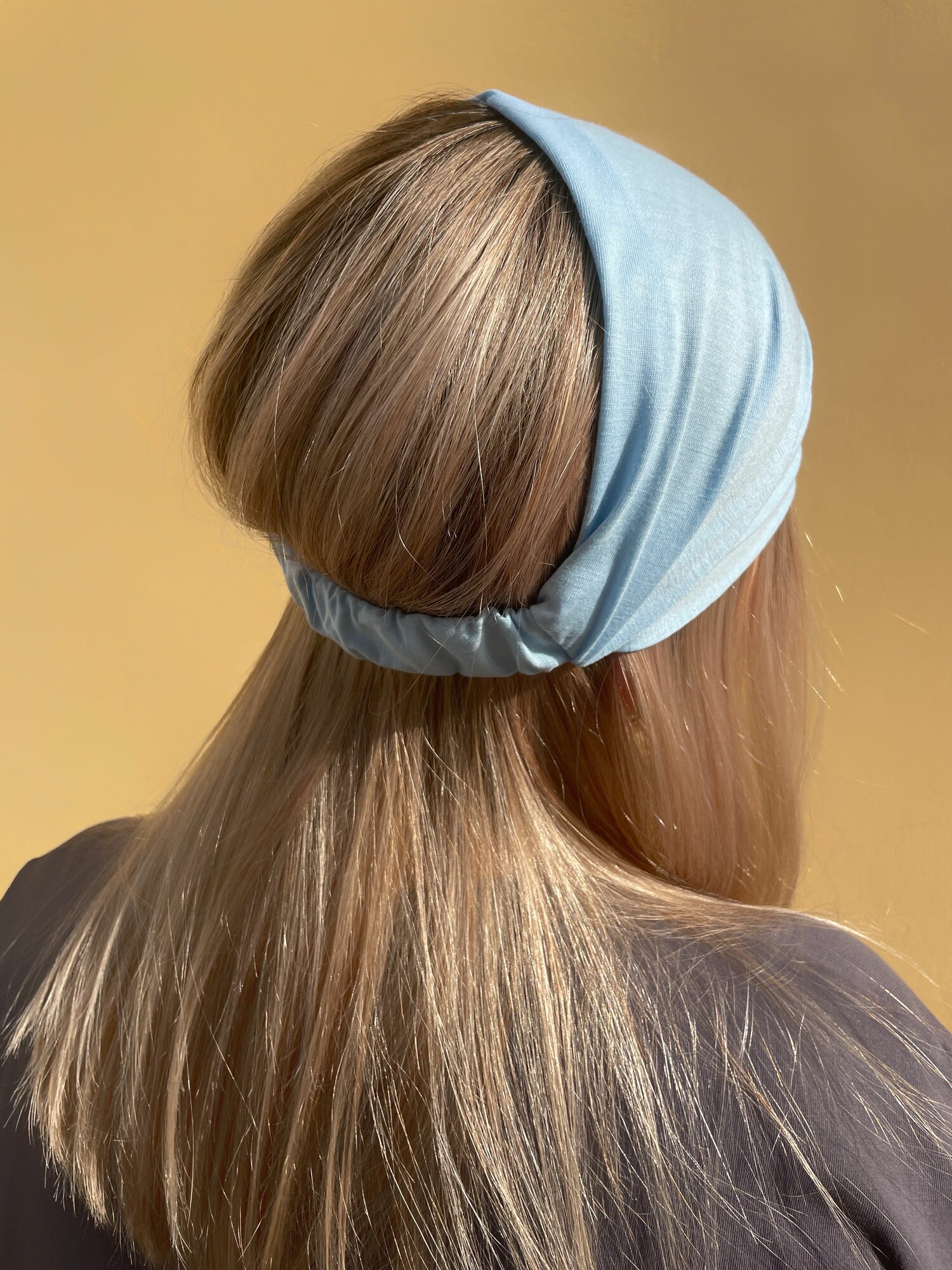 СохранитьПовязка бандана косынка на голову хлопковая однотонная эластичная голубая на резинке интересное: