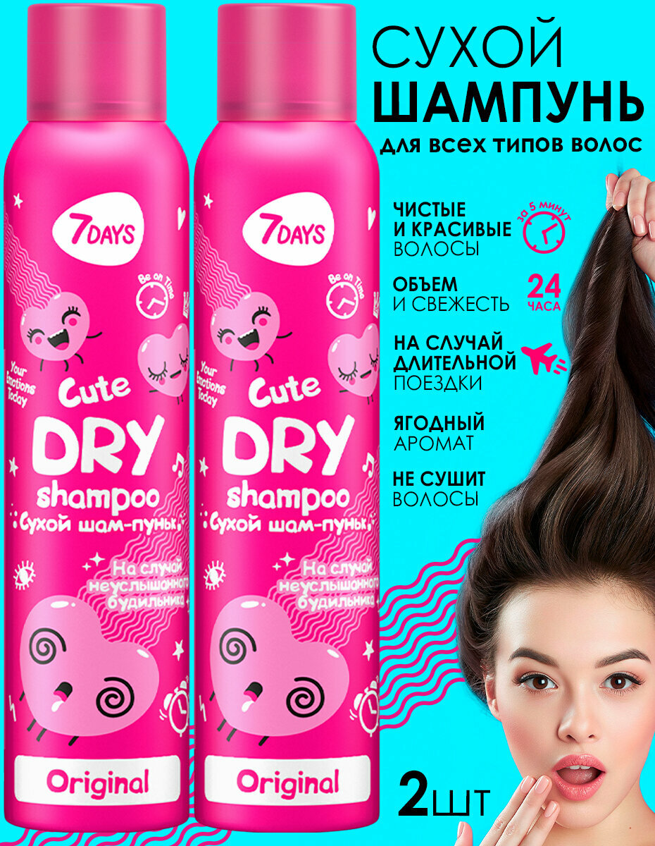 Купить 7DAYS Сухой шампунь для объема волос, для всех типов волос, набор 2 шт CUTE мгновенное очищение