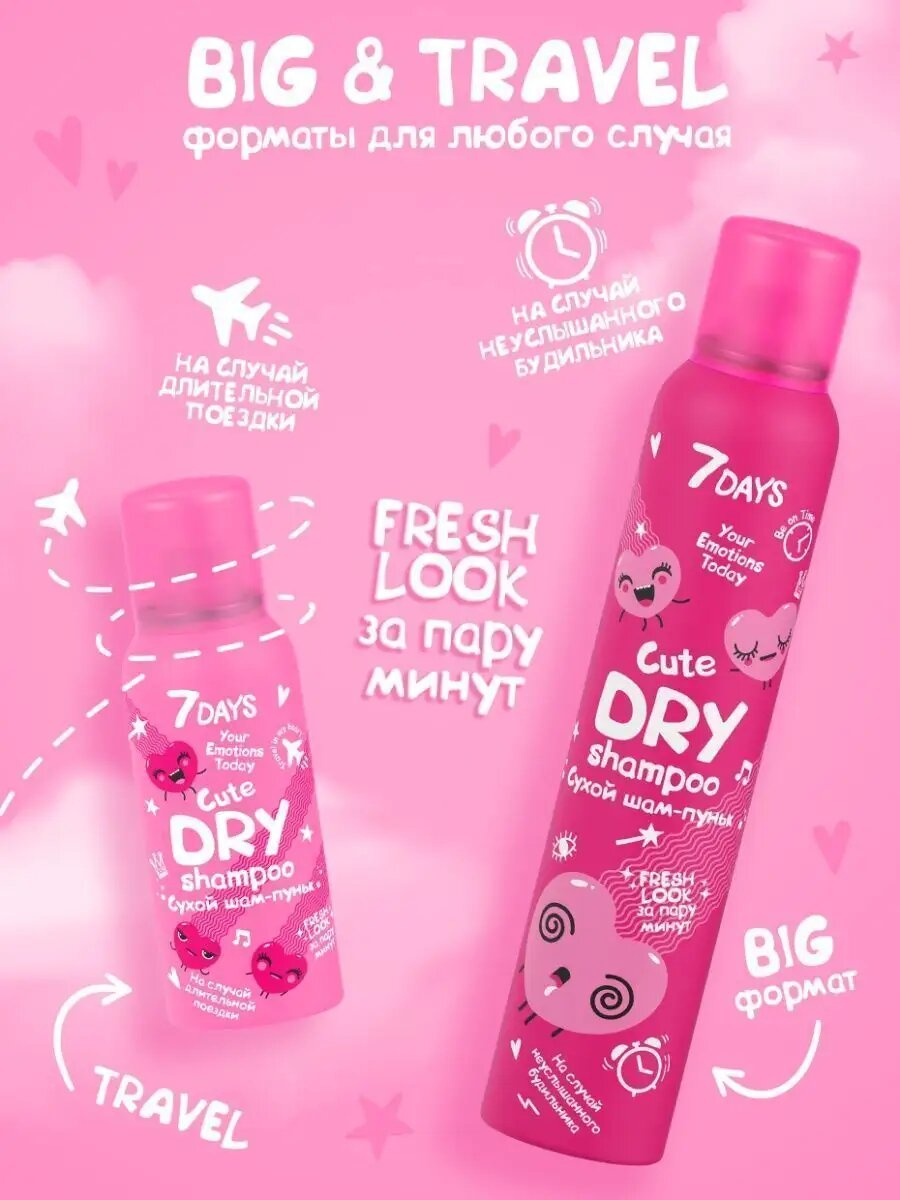 Сохранить7DAYS Сухой шампунь для объема волос, для всех типов волос, travel формат, набор 2 шт CUTE 2в1 мгновенное очищение интересное: