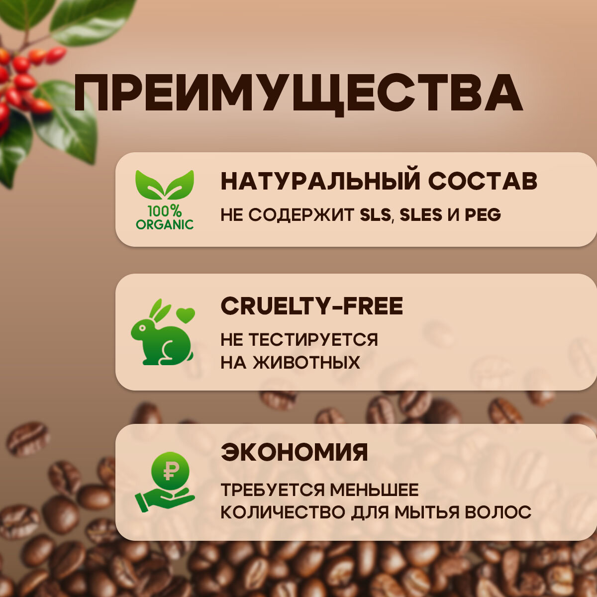Купить Твердый шампунь с насыщенным ароматом Кофе бессульфатный, энергия и рост