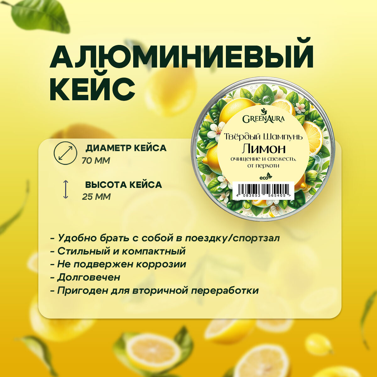 Купить Твердый шампунь Лимон против перхоти для всех типов волос, GreenAura