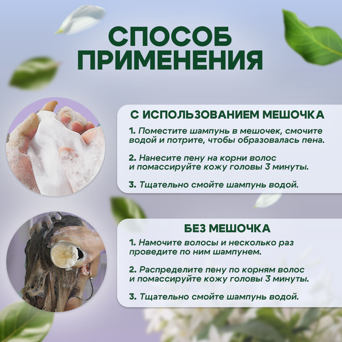 | Способ применения | Способ применения - нанесите шампунь на мокрые волосы, проведя им несколько раз - массирующими движениями взбейте пену - тщательно смойте водой Обязательно просушите шампунь после использования |