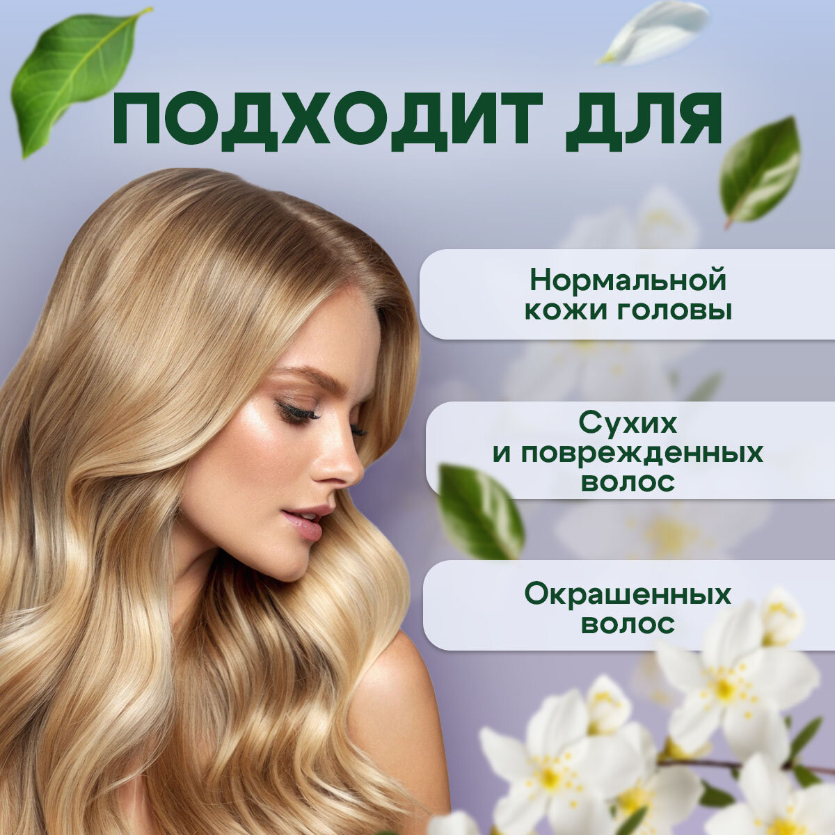 | Тип волос | для всех типов / жирные у корней и сухие на кончиках / тонкие и поврежденные |