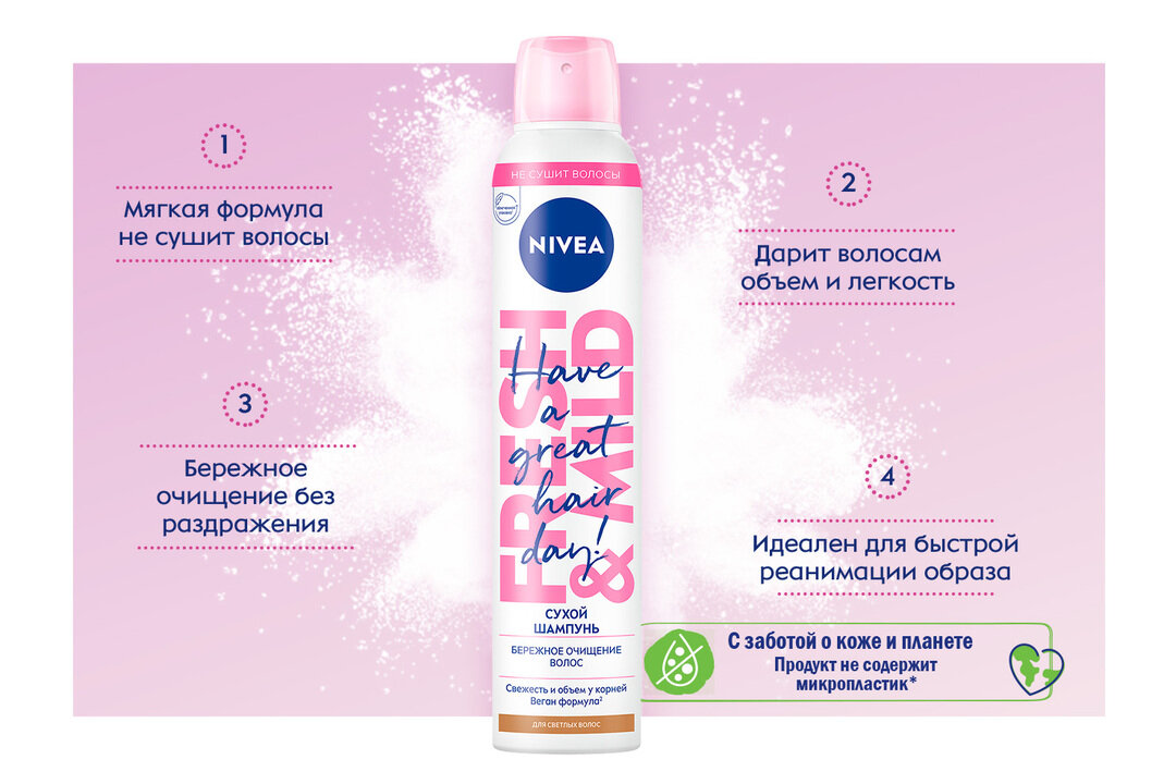 Купить Сухой шампунь для светлых волос NIVEA с эффектом объема, против жирного блеска, 200 мл
