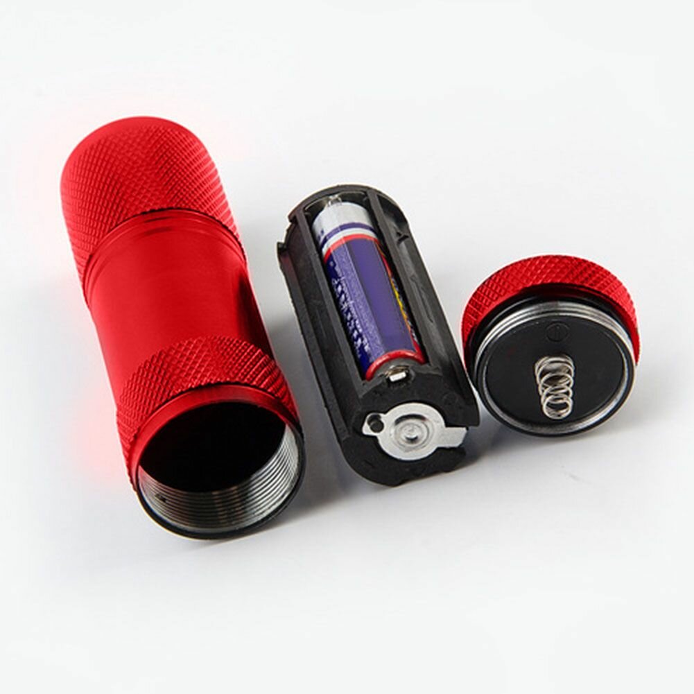 Ультрафиолетовый фонарик 395nm 9LED для обнаружения органики и сушки лака и клея (красный)