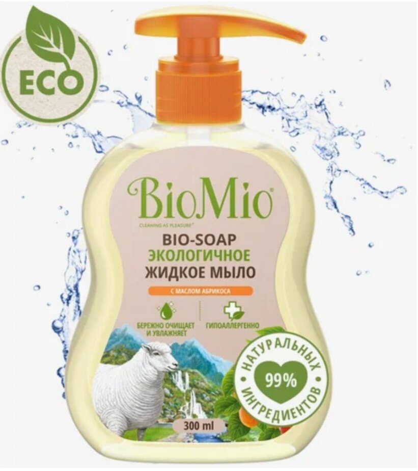 Жидкое мыло BioMio Bio-Soap с абрикосом, гипоаллергенное смягчающее, с дозатором, 300 мл х 2 шт