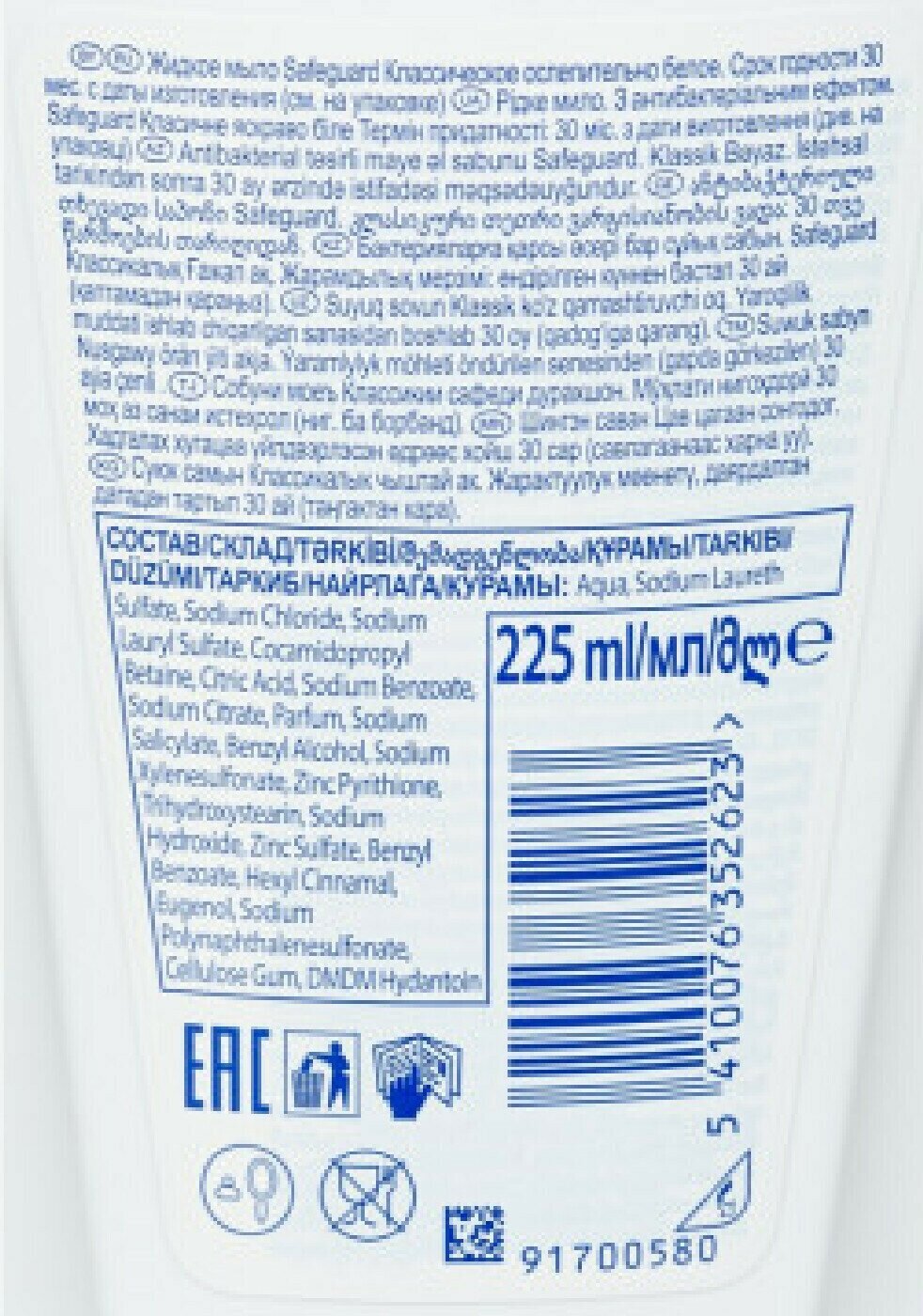 Купить SAFEGUARD Жидкое мыло Классическое Ослепительно белое 225мл