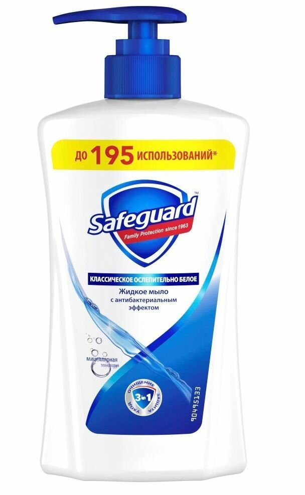 Мыло жидкое Safeguard Классическое, ослепительно белое, 225 мл