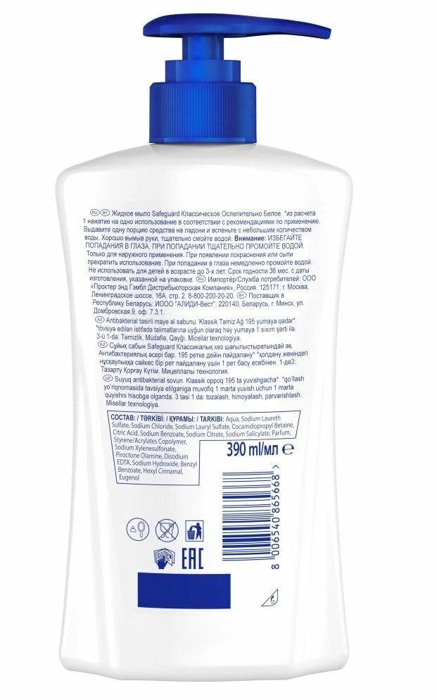 SAFEGUARD Жидкое мыло Классическое Ослепительно Белое 390мл
