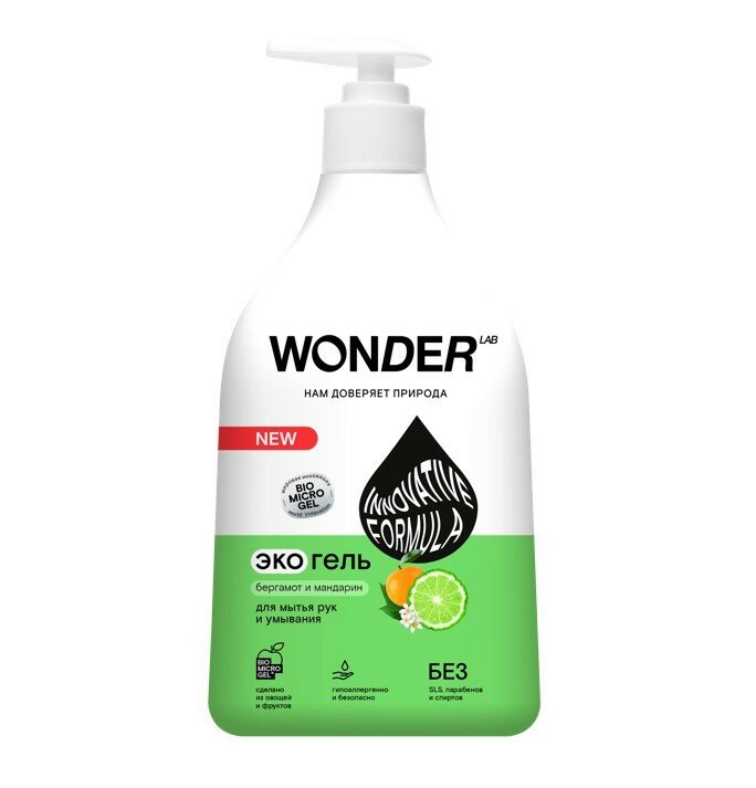 WONDER LAB Экогель для мытья рук и умывания Бергамот и мандарин, 540 мл