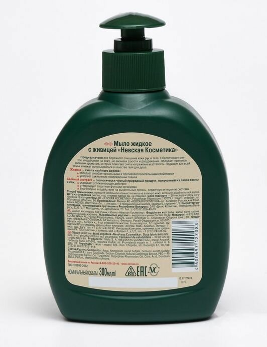 Невская Косметика Жидкое мыло С живицей для рук и тела, 300 мл,3 шт