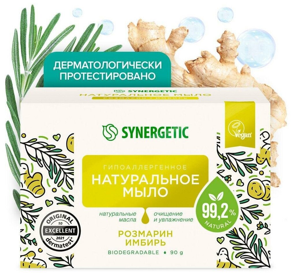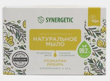 Купить Synergetic натуральное туалетное мыло розмарин и имбирь кусок 90гр