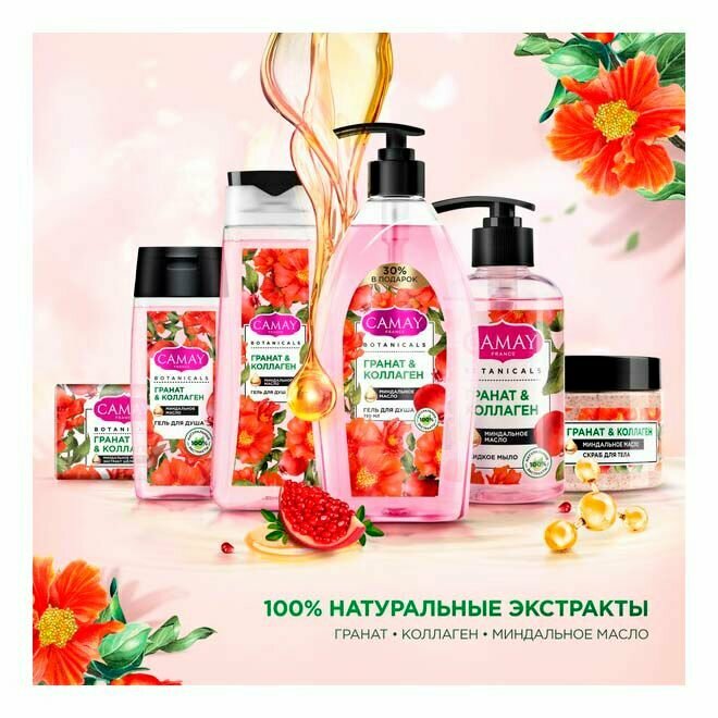 CAMAY BOTANICALS цветы граната жидкое мыло с коллагеном миндальным маслом на 100% натуральной основе 500 мл