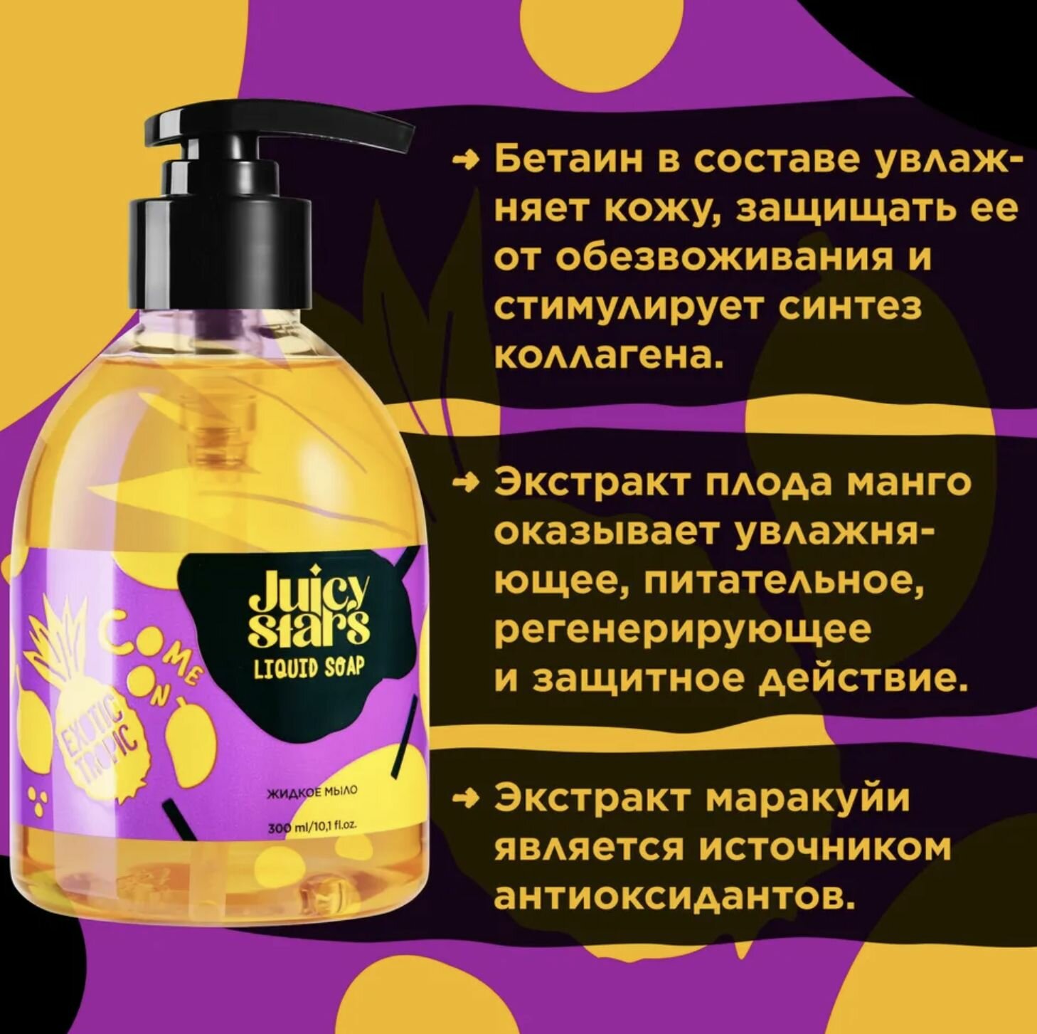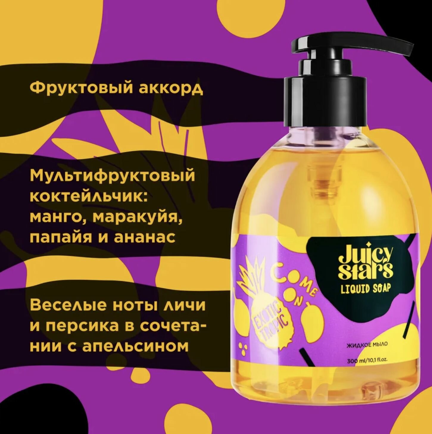 JUICY STARS Жидкое мыло для рук "COME ON EXOTIC TROPIC", с ароматом тропиков, 300мл