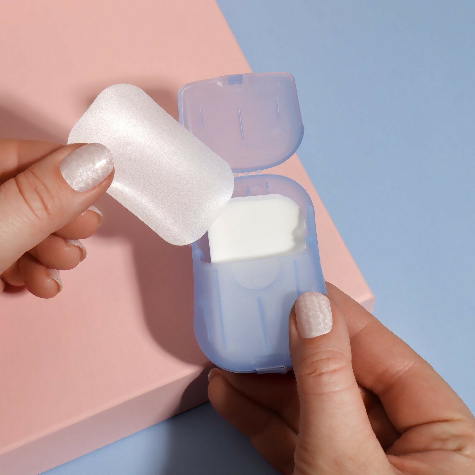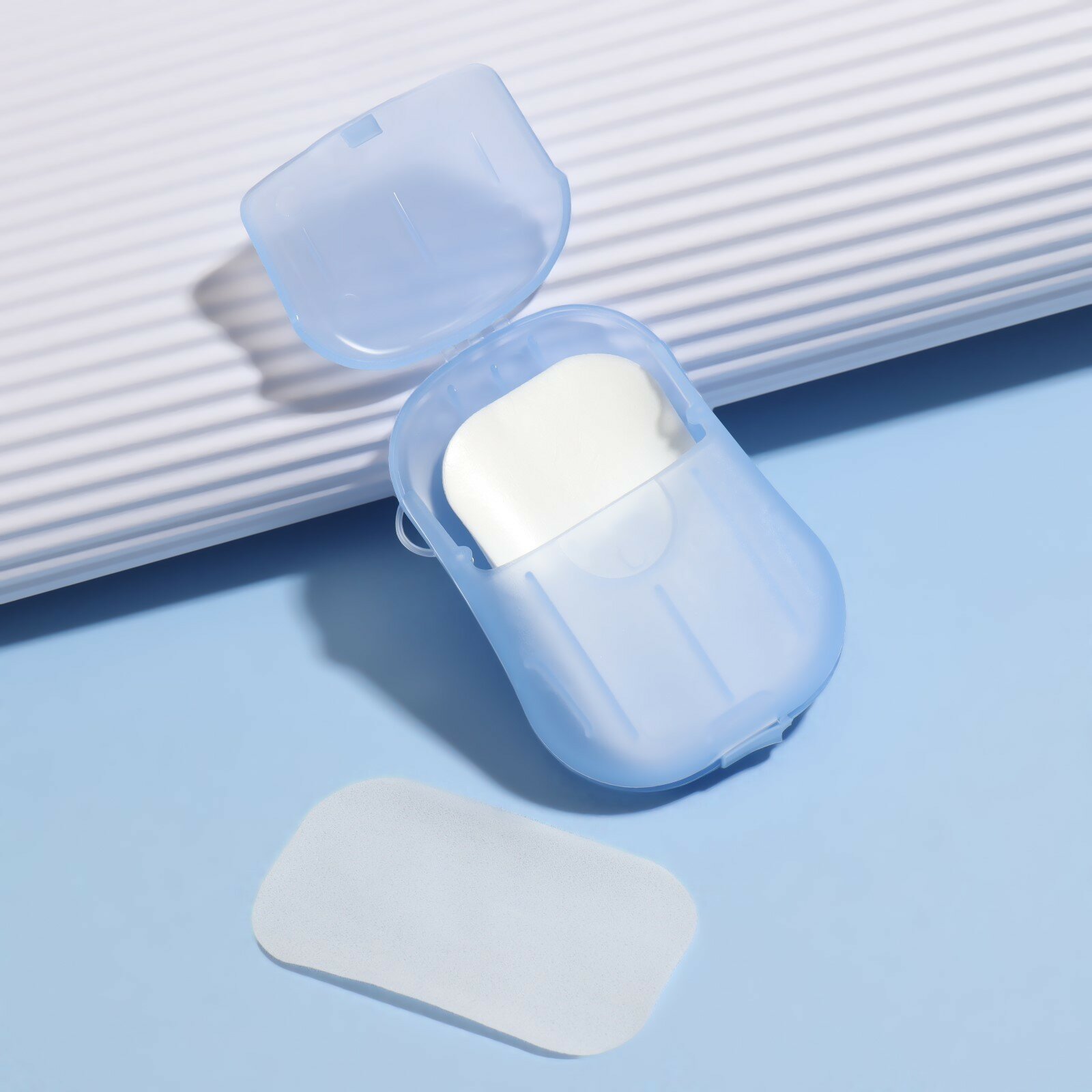 Мыло листовое, в пластинах, 18 (± 2) шт, в футляре, цвет голубой(5 шт.)