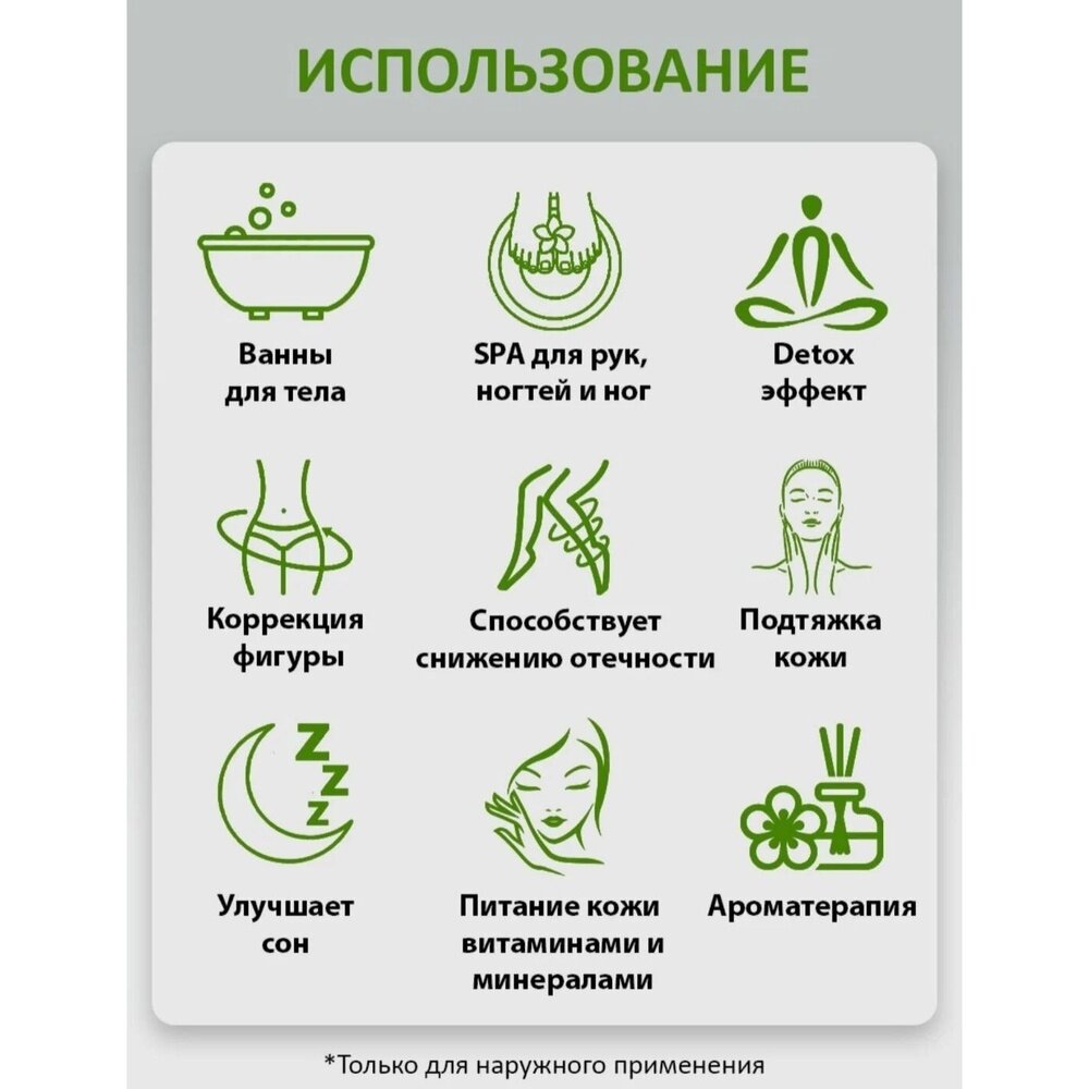 | Способ применения | Растворите 175г соли (треть банки) в ванне с теплой водой (t 36°С-38°С), принимайте ванну 15-20минут. Рассчитано на 3 применения. |