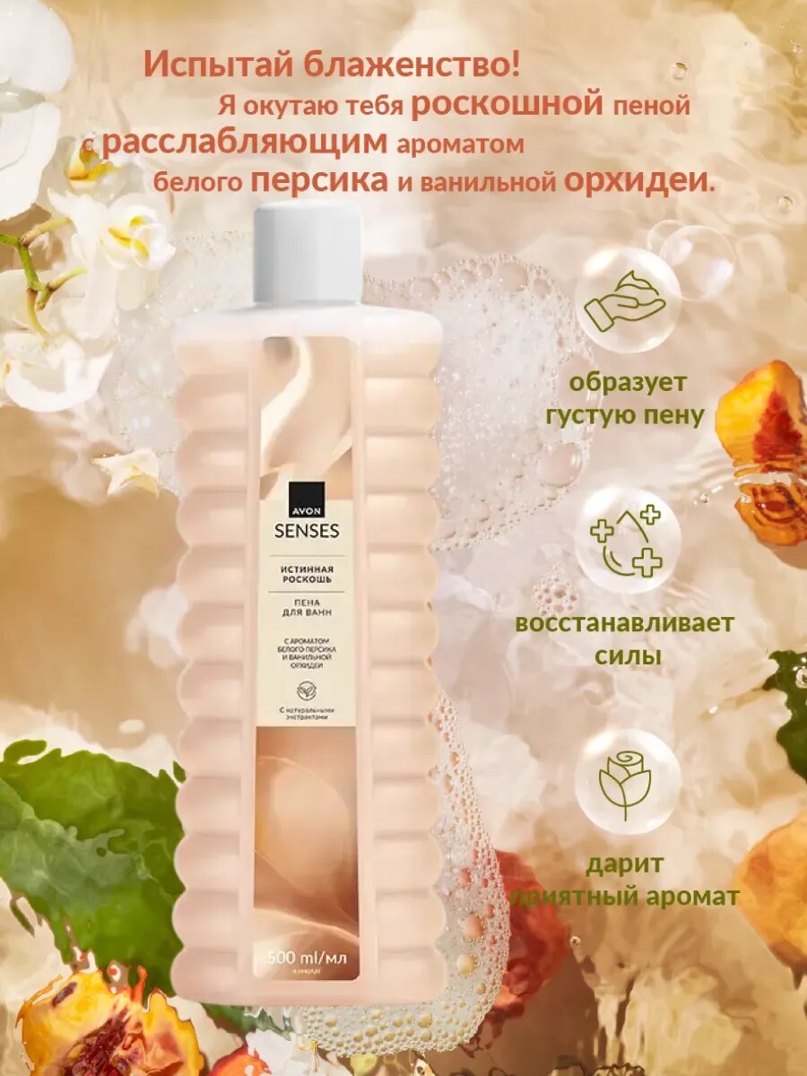 Пена для ванны Истинная роскошь с ароматом белого персика и ванильной орхидеи, эйвон 500 мл
