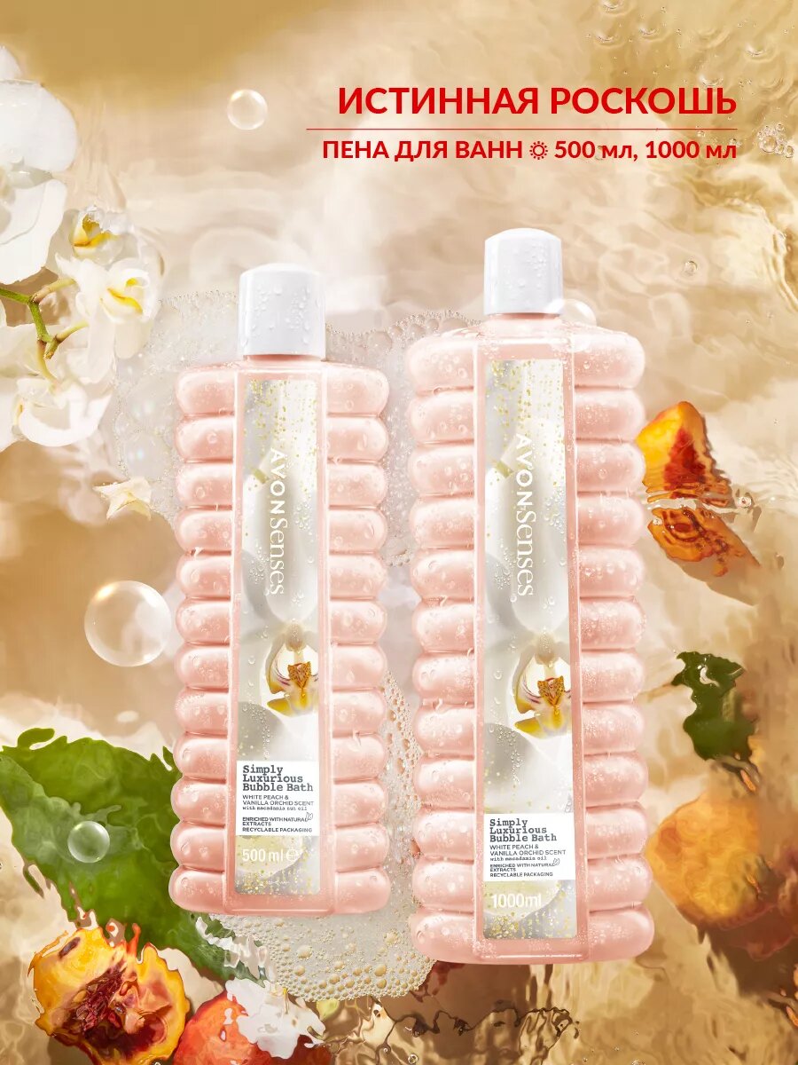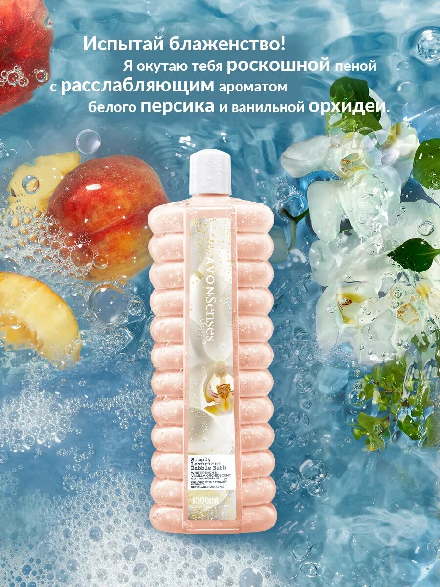 Пена для ванны Истинная роскошь с ароматом белого персика и ванильной орхидеи, эйвон 500 мл