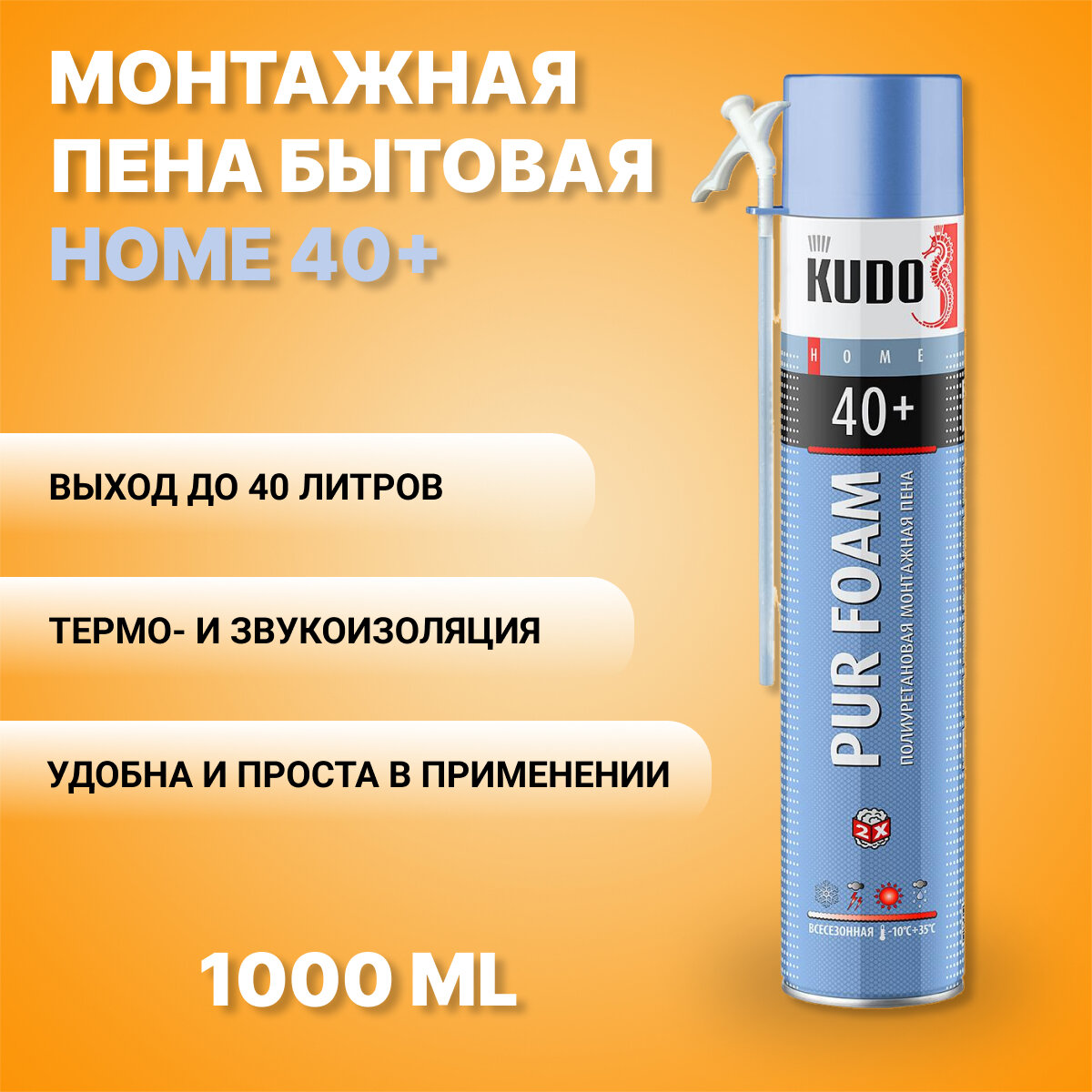 Бытовая монтажная пена Kudo Home 40+, всесезонная, 1000 мл