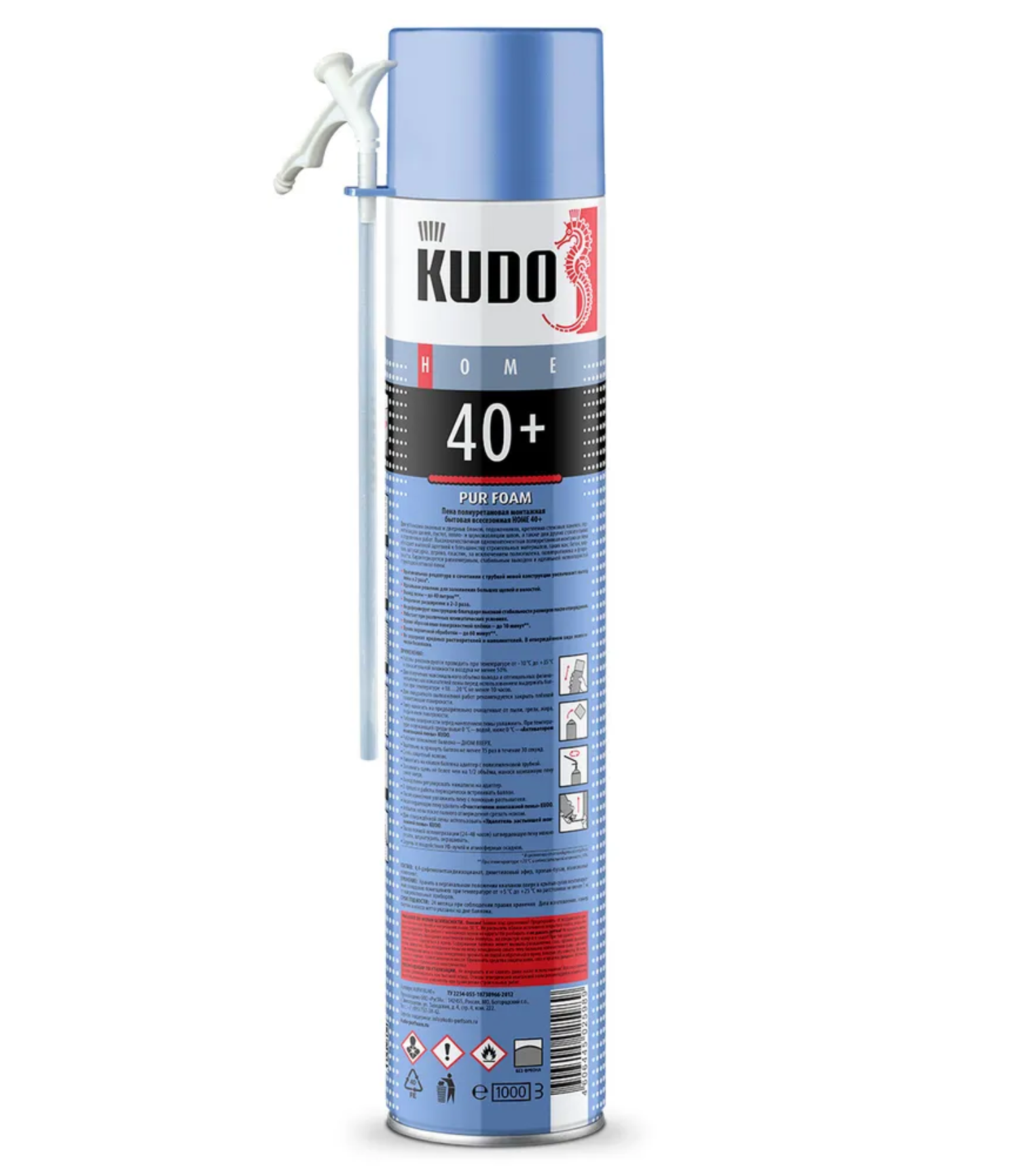 Кудо Хоум 40+ пена монтажная с трубочкой (1л) / KUDO Home 40+ пена полиуретановая бытовая монтажная (1л) всесезонная