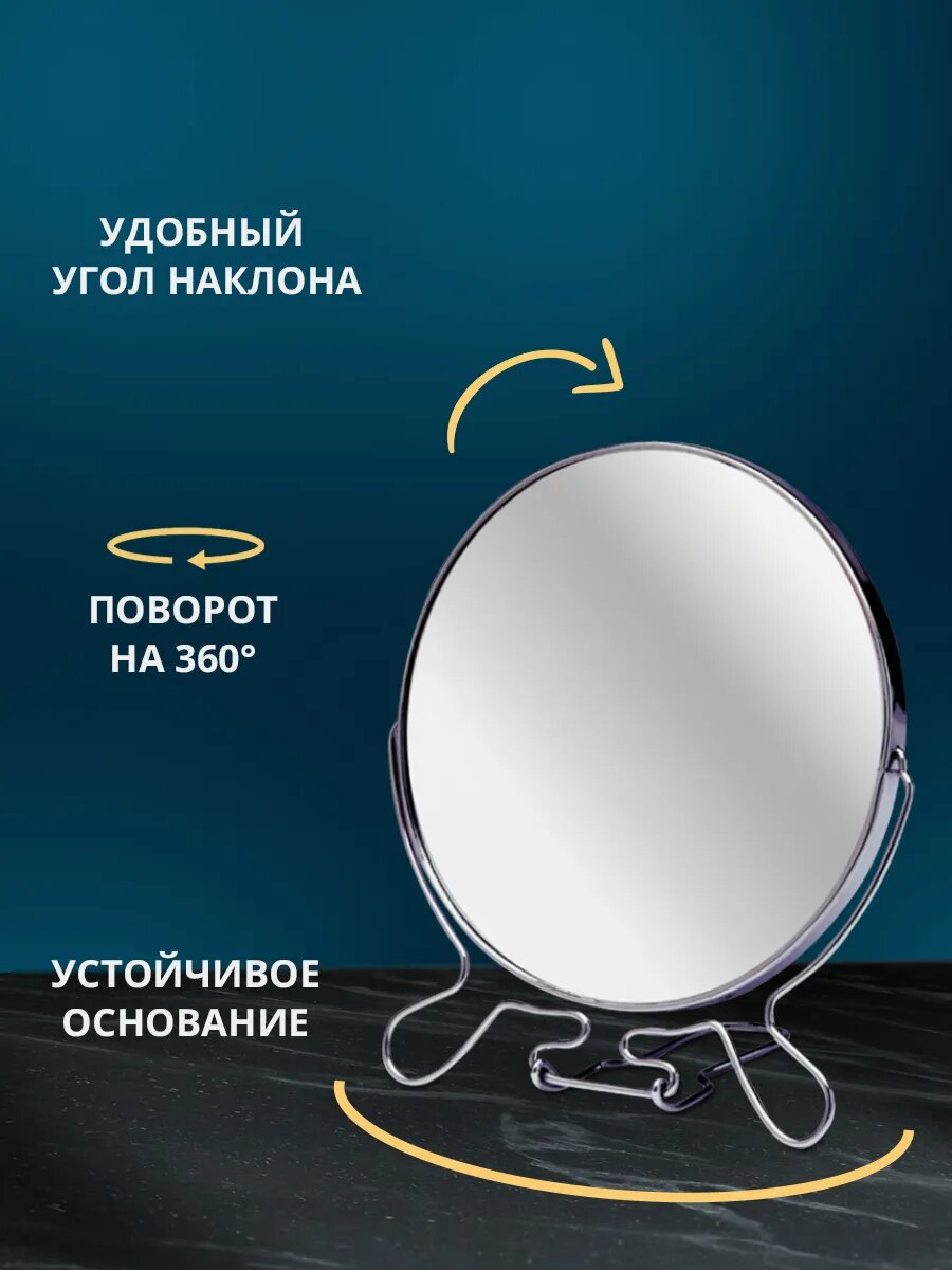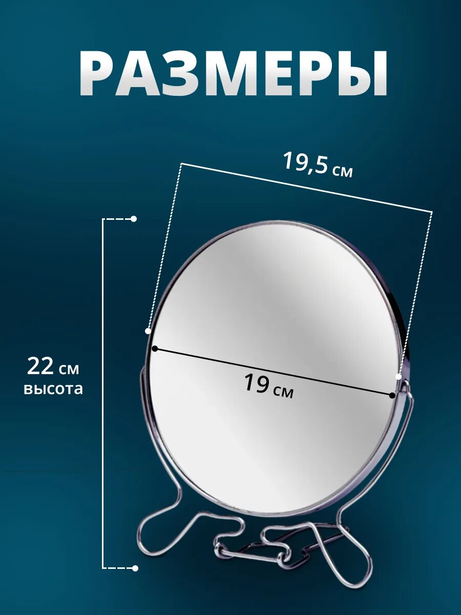 Зеркало косметическое настольное двустороннее разного увеличения 19см интересное: