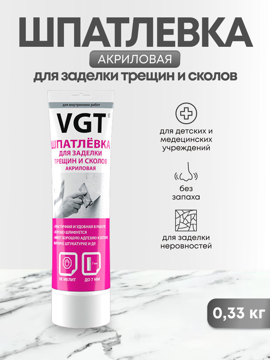 Шпатлевка Вододисперсионная VGT 0.33кг Акриловая для Заделки Трещин и Сколов для Внутренних Работ / ВГТ.