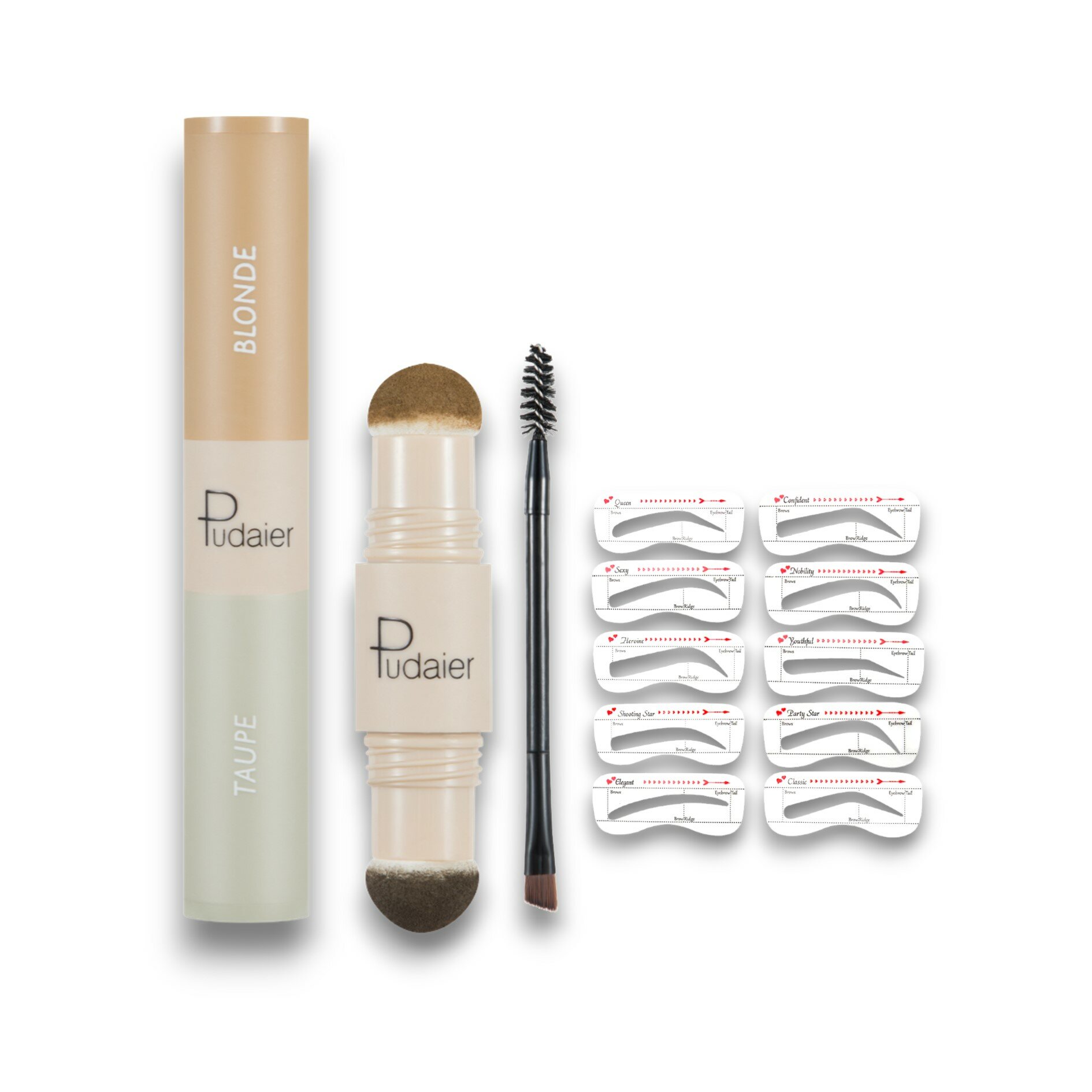 | Состав набора | двойная пудра для бровей, 10 трафаретов, двойная кисточка |