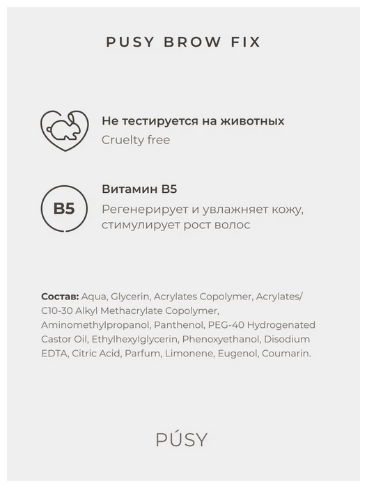Купить PUSY Гель для бровей с эффектом ламинирования, 5 мл, бесцветный