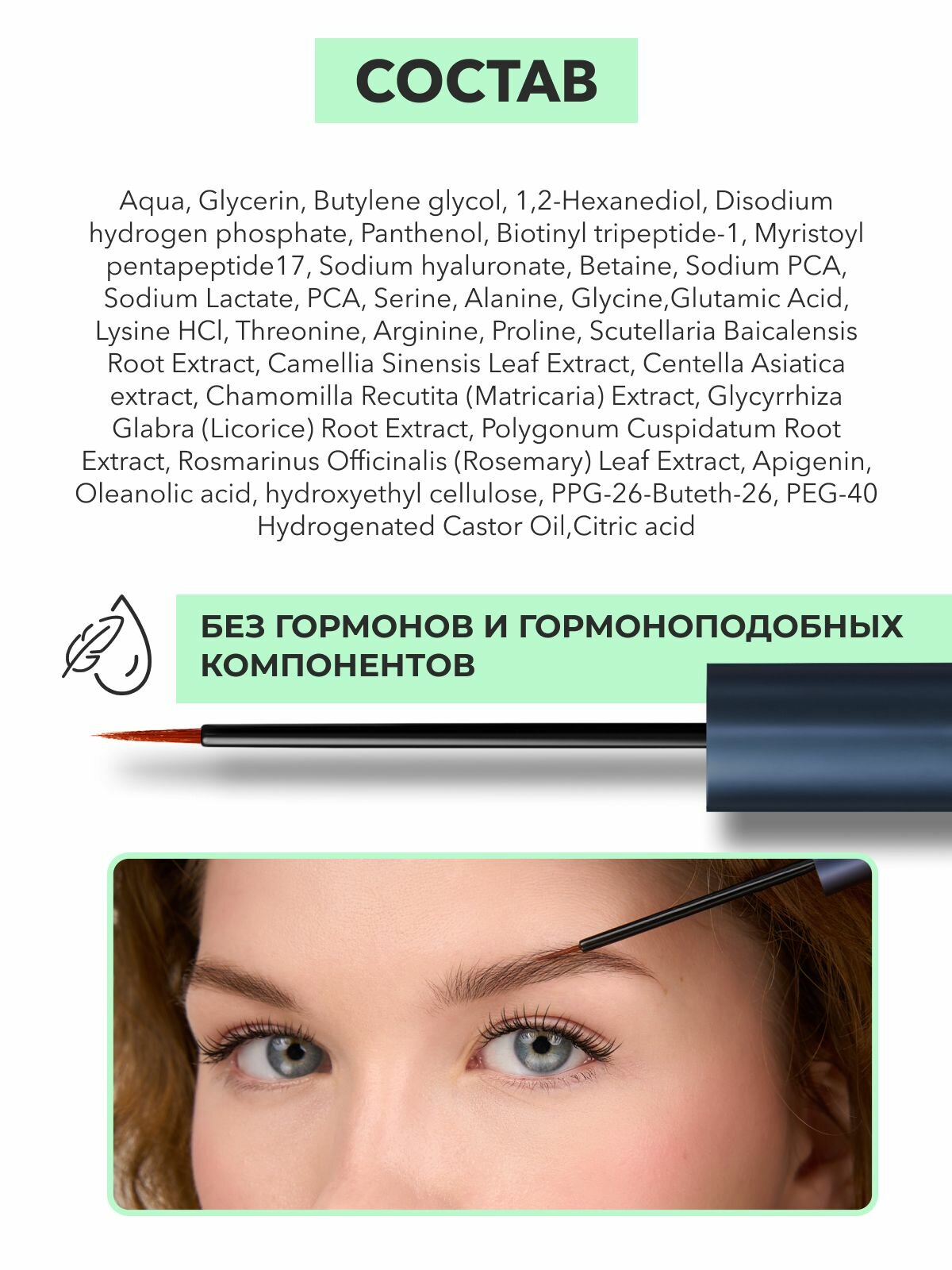 | Дополнительная информация | Без гормонов, протестировано офтальмологами и дерматологами, гарантия роста ресниц, научная разработка. Активные ингредиенты: биодоступный пептид, гиалуроновая кислота, биотин, витамин B8 |