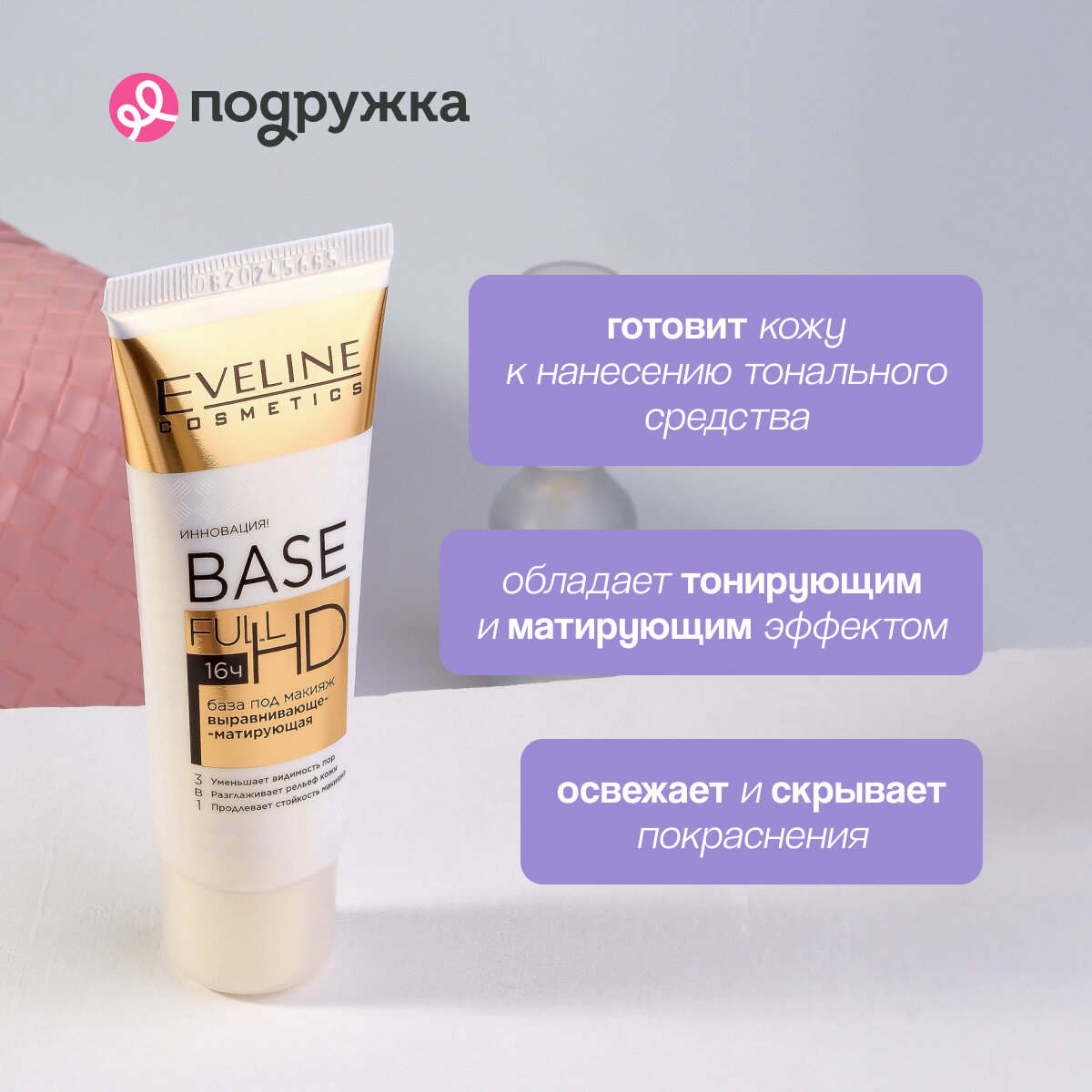EVELINE Выравнивающе-матирующая 3в1 база под макияж серии BASE FULL HD, 30мл