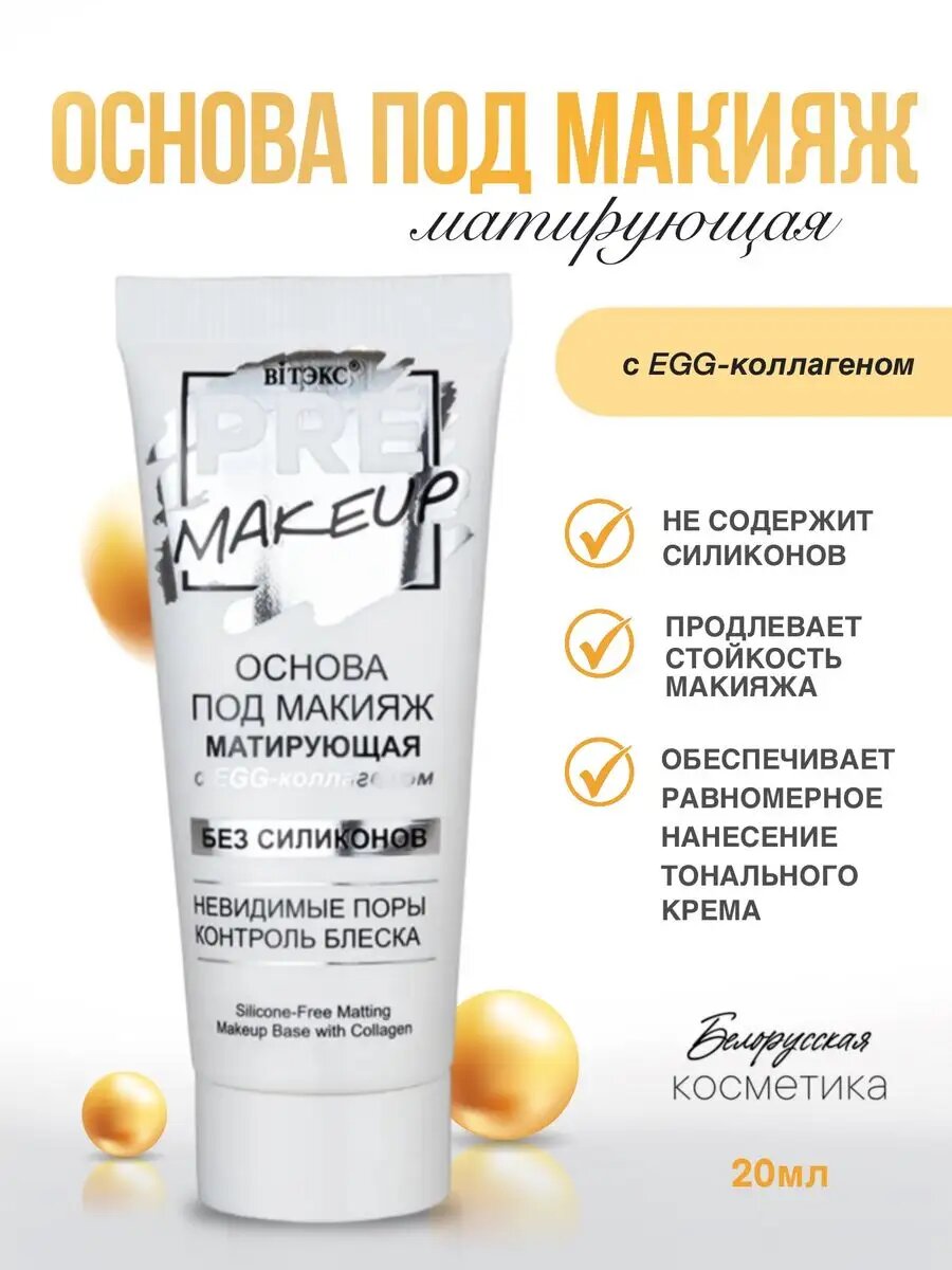 Витэкс PRE-MAKEUP Основа под макияж Матирующая с EGG-коллагеном, 20 мл, без цвета интересное: