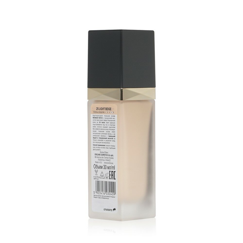 Тональная основа Eveline "Wonder Match", адаптирующаяся, тон 25, Light beige, 30 мл