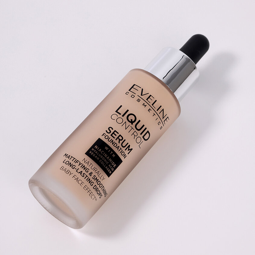 Крем тональный для лица `EVELINE` Liquid Control с ниацинамидом и коллагеном, тон 005 Ivory