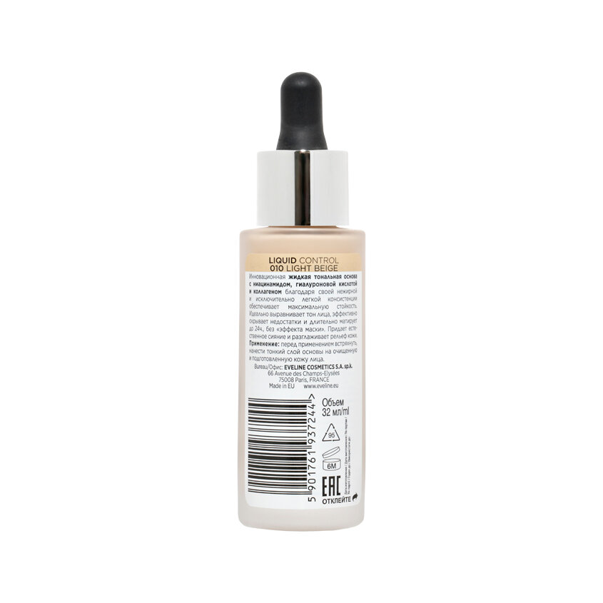 Тональная основа Eveline Liquid Control, инновационная, жидкая, 010, light beige, 32 мл