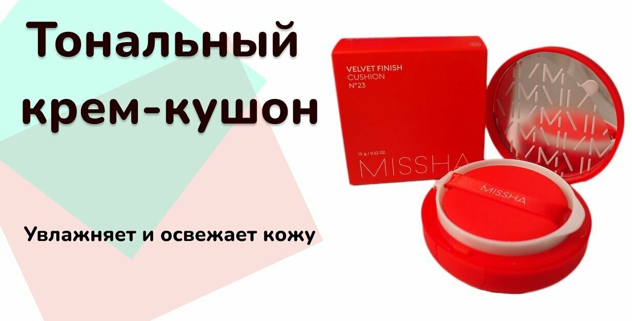 Ниже Вы можете прочитать отзывы на Тональный кушон с матовым финишем Missha Velvet Finish Cushion SPF50+ PA+++ Тон 23, ознакомится с подробными характеристиками, посмотреть интересные обзоры и фотографии на Тональный кушон с матовым финишем Missha Velvet Finish Cushion SPF50+ PA+++ Тон 23.
